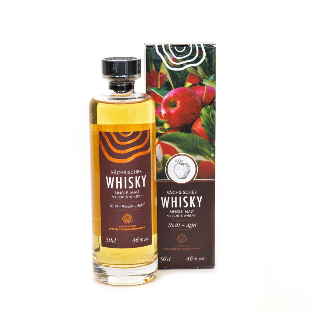 Der erste Whisky dieser Serie reifte im Apfelweinfass und ist ab sofort erhältlich. Für Apfelfans ein absolutes Muss: Der Apfel Whisky duftet und schmeckt nach Apfel, ohne den feinen Whiskygeschmack zu überdecken. Apfel und Whisky bilden eine harmonische Komposition. Der Geschmack ist besonders fruchtig, angenehm mild und enthält eine vanillige Süße durch die Vorreifung in Ex-Bourbon-Fässern sowie eine frische, säuerliche Note des Apfels.